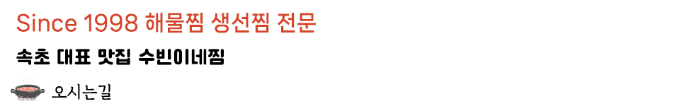 • 수빈이네찜 | 대표 : 조수빈 | 사업자등록번호 : 227-04-74177 | 연락처 : 033-632-5180 | 소재지 : 강원도 속초시 동해대로 3930번길 6 1층
